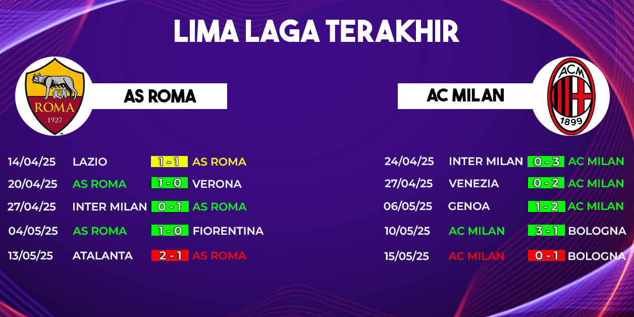 Namun, statistik hanyalah angka di atas kertas. Pertandingan penentuan seperti ini akan ditentukan oleh mentalitas, taktik jitu, dan semangat juang di lapangan. Roma akan bertarung dengan dukungan penuh suporter fanatiknya, sementara Milan datang dengan tekad membara untuk menyelamatkan musim mereka.
