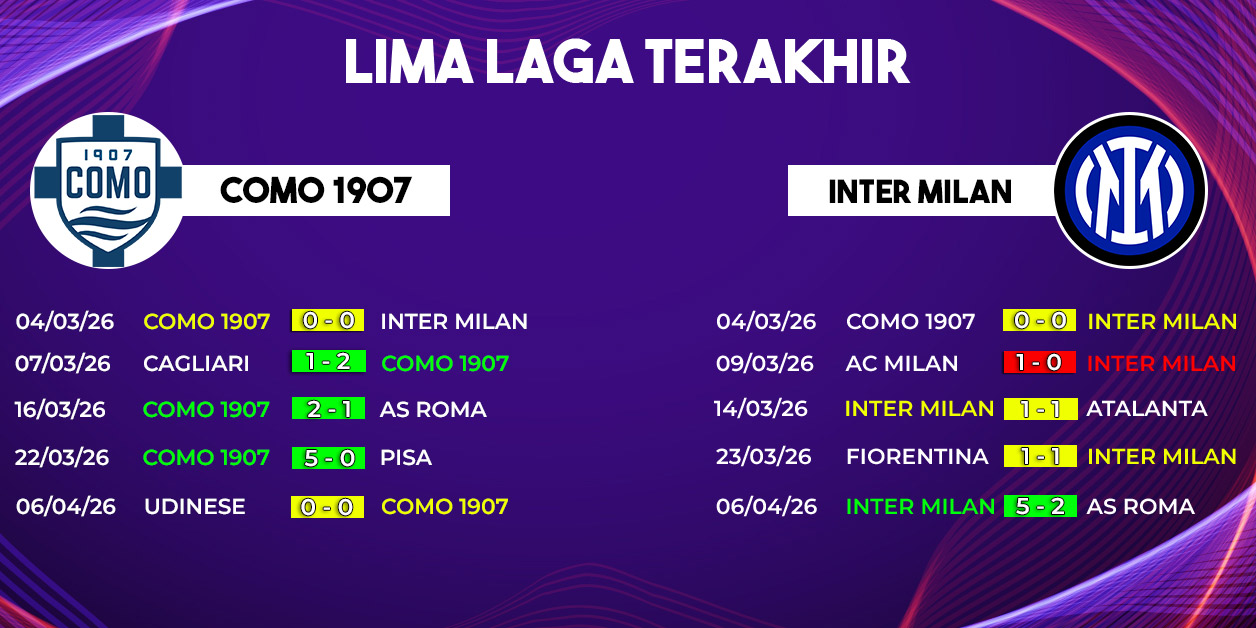 Di sisi lain, Como gagal meraih kemenangan dalam laga terakhir setelah hanya bermain imbang melawan Udinese. Namun, hasil tersebut tidak mengubah posisi mereka di papan atas.
