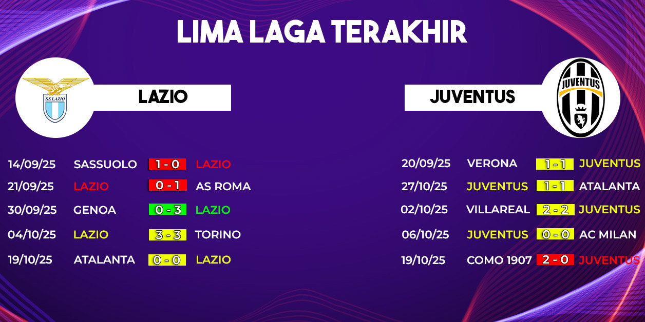Pertandingan Lazio vs Juventus akan menjadi salah satu laga paling dinantikan pada pekan ke-8 Serie A 2025/2026. Duel ini akan berlangsung di Stadio Olimpico, pada Senin, 27 Oktober 2025 pukul 02.45 WIB, dan dapat disaksikan secara live streaming melalui Vidio. Kedua tim sama-sama memiliki reputasi besar, namun awal musim yang inkonsisten membuat laga ini menjadi titik penting untuk mengembalikan kepercayaan diri serta memperbaiki posisi di klasemen.
