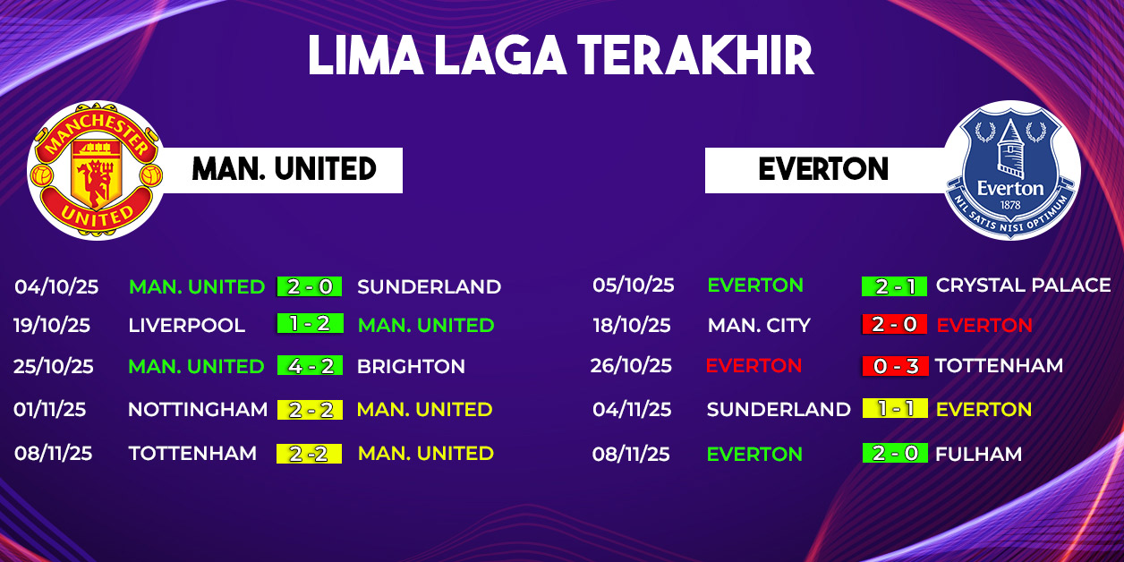 Menjelang laga kontra Everton, Manchester United memasuki pertandingan dengan kepercayaan diri tinggi. Dalam lima pertandingan terakhir di semua kompetisi, Setan Merah tampil impresif tanpa sekalipun menelan kekalahan. Konsistensi ini membuat skuad asuhan manajer mereka semakin solid untuk mengamankan poin penuh di kandang.